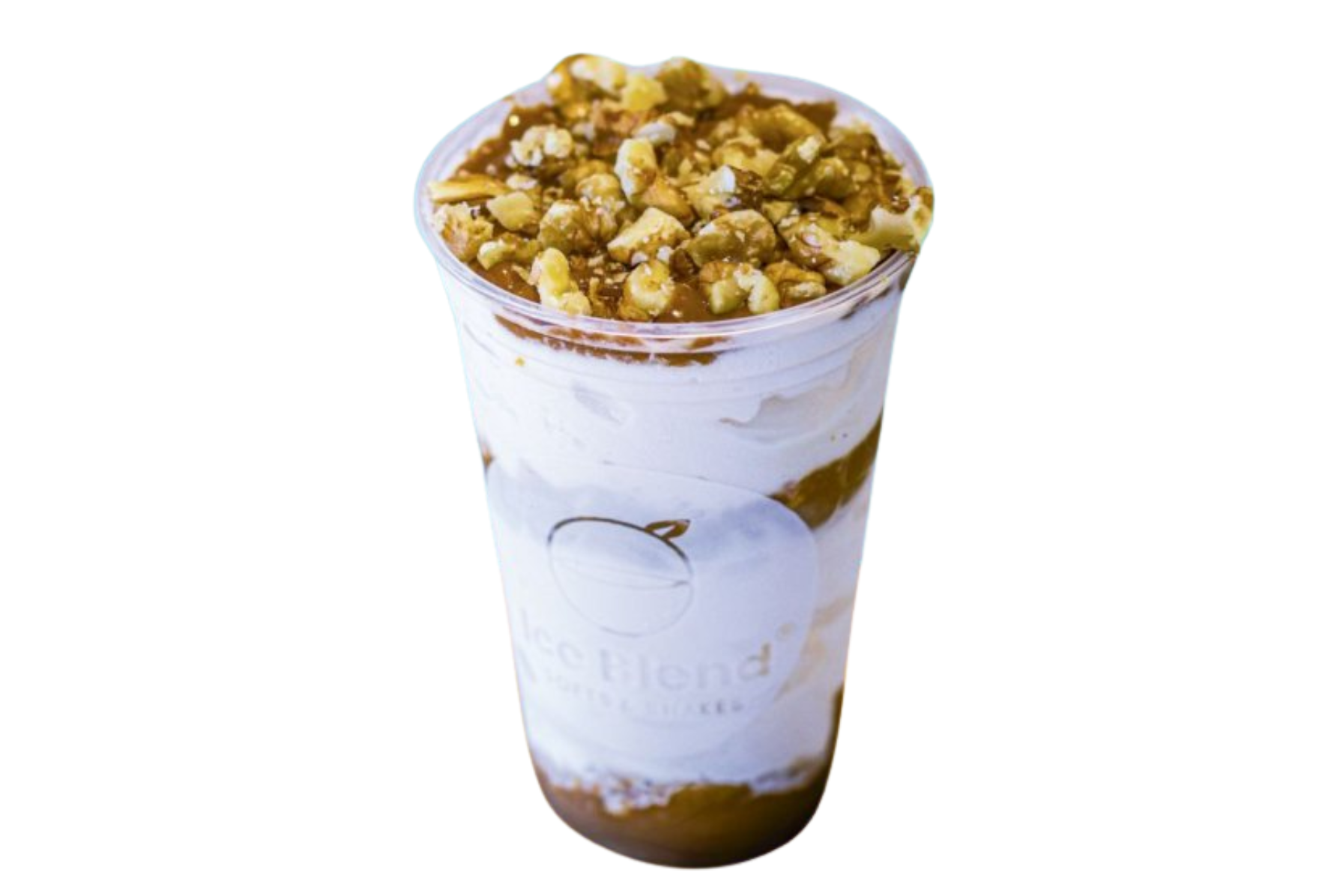 Sorvete de alta qualidade sabor creme, nozes picadas e doce de leite.